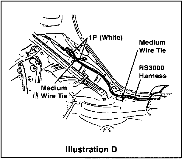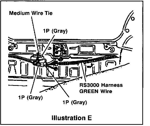 ^ The previous location is the same as the dealer installed RS3OOO door courtesy connection to the door courtesy switch connectors on the driver side rear fender body panel. (Refer to page 3, Illustration D.)