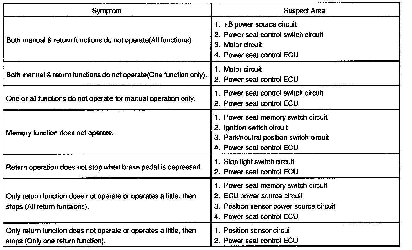 - If the trouble still reappears even though there are no abnormalities in any of the other circuits, then check and replace the Seat Position Control ECU as the last step.