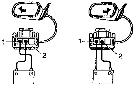 c. Connect the positive (+) lead from the battery to terminal 1 and negative (-) lead to terminal 2, check that the mirror turns left side.