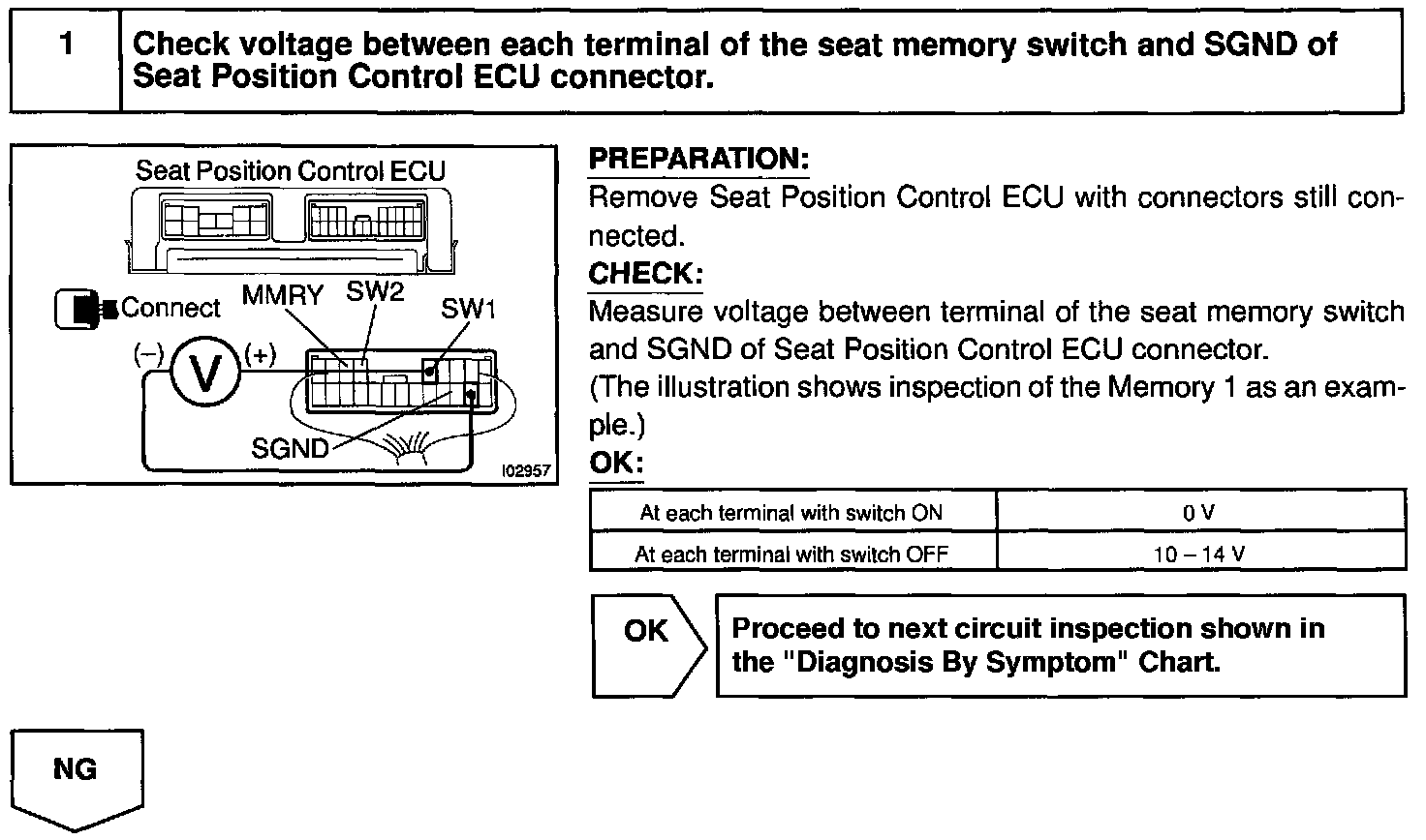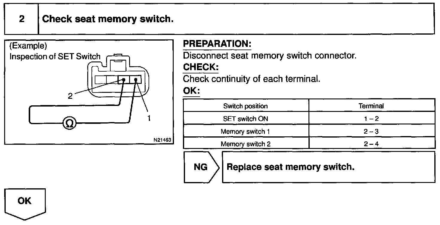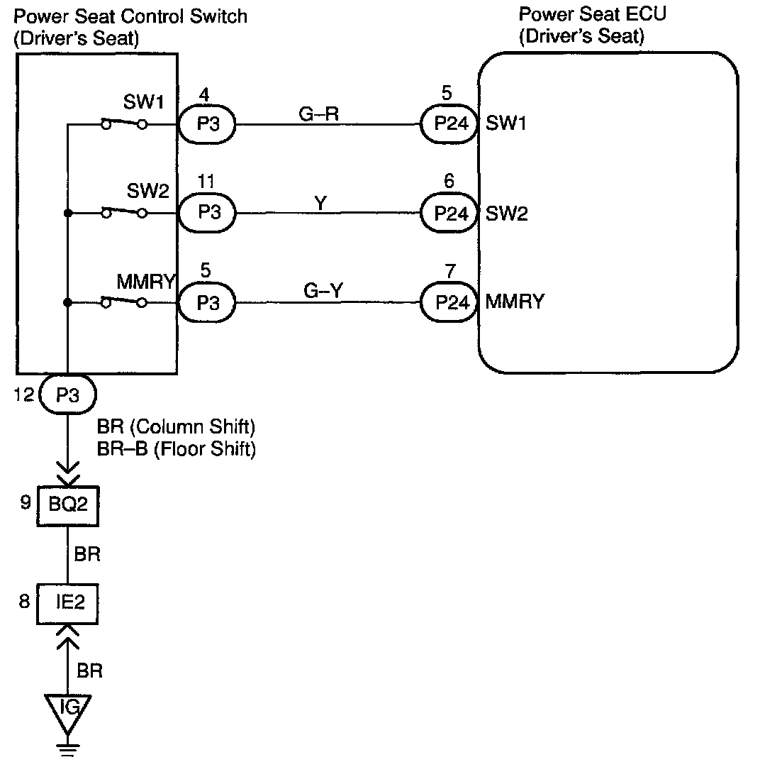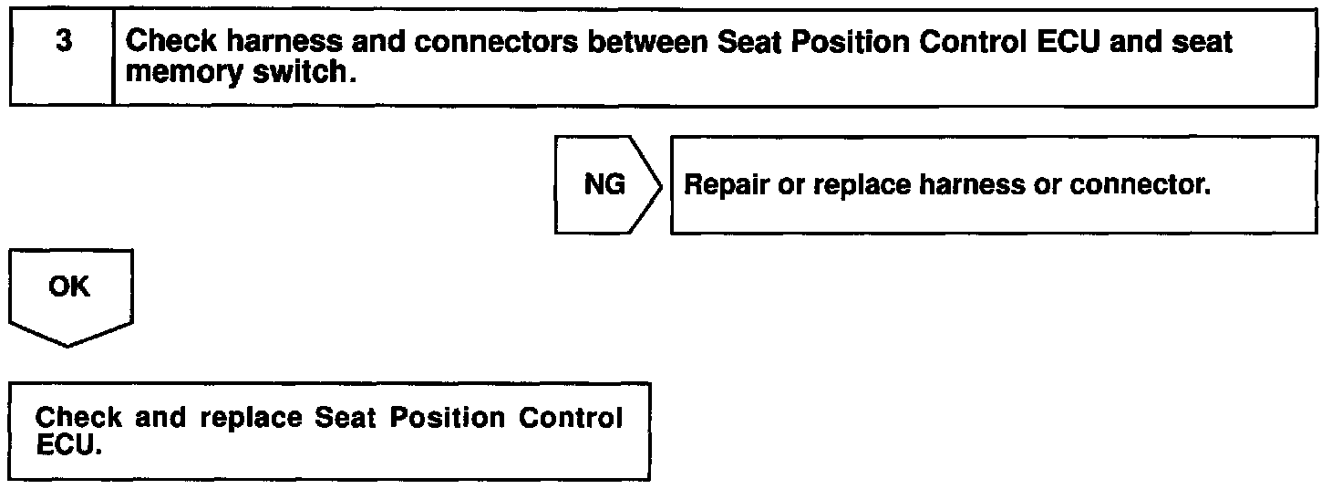 Seat memory switch sends memory and return signals to the seat position control ECU.