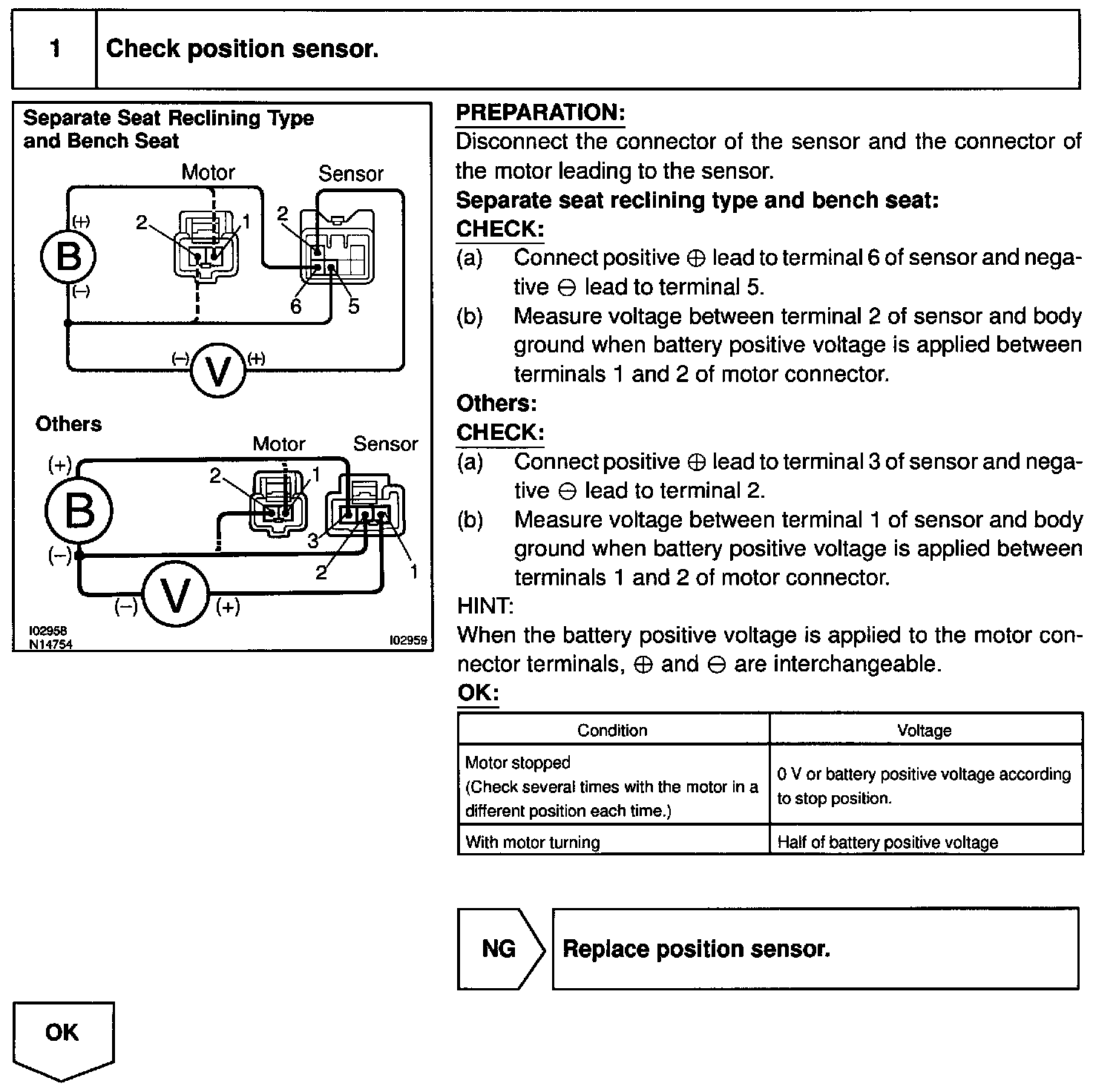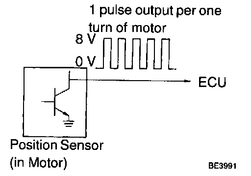 The position sensor senses movement of the seat and send pulse signals to the ECU. The position sensor sends pulse to the ECU in proportion to the amount of seat movement, as shown.