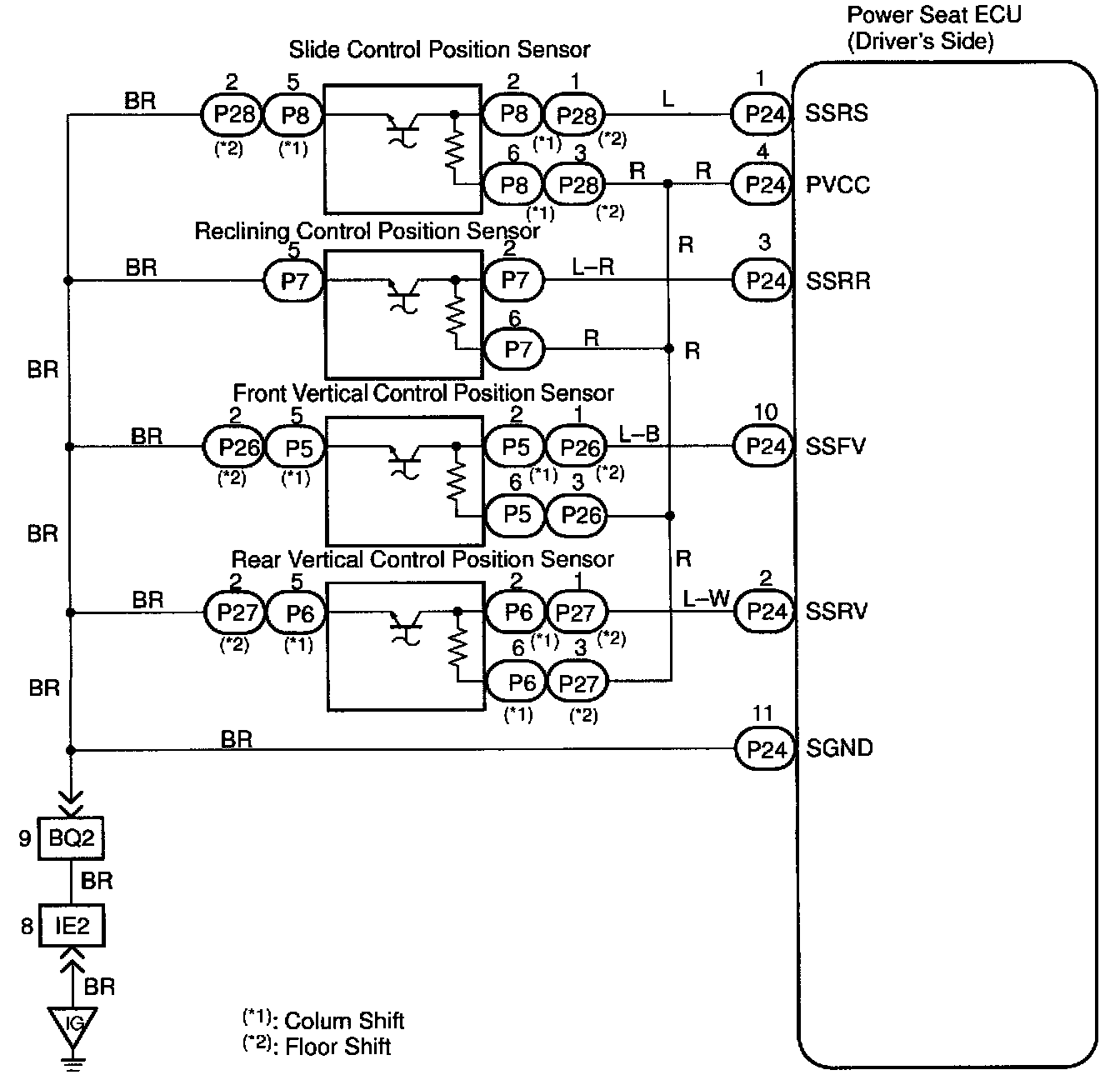 This circuit provides power to the slide, front vertical and reclining position sensors.