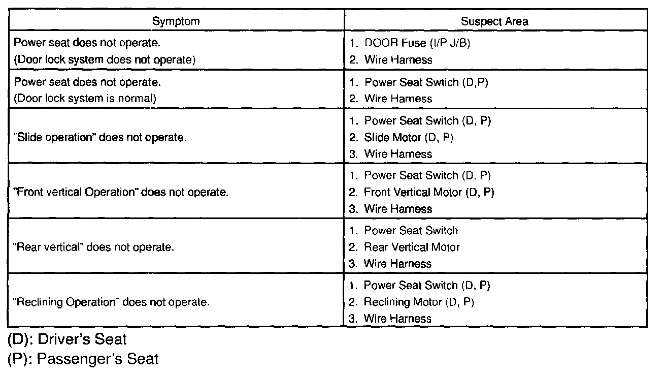 Power Seat Control System (Without Driving Position Memory Driver's Seat)