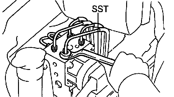 Using Special Service Tools (SST), disconnect the 6 brake lines from the Anti-lock Brake System (ABS) actuator.