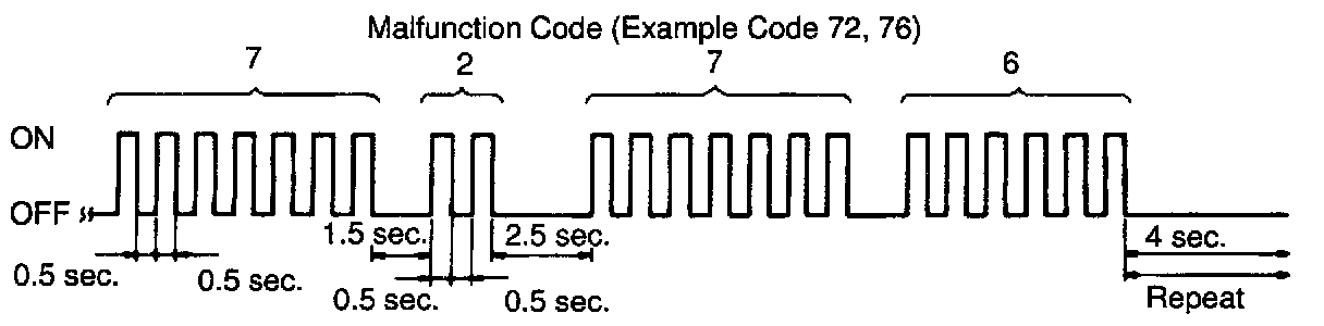 - If every sensor is normal, a normal code is output (A cycle of 0.25 sec. ON and 0.25 sec. OFF is repeated).