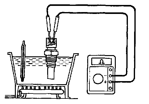 b. Using an ohmmeter, check that there is continuity between the terminals when the coolant temperature is below 88 °C (190 °F).