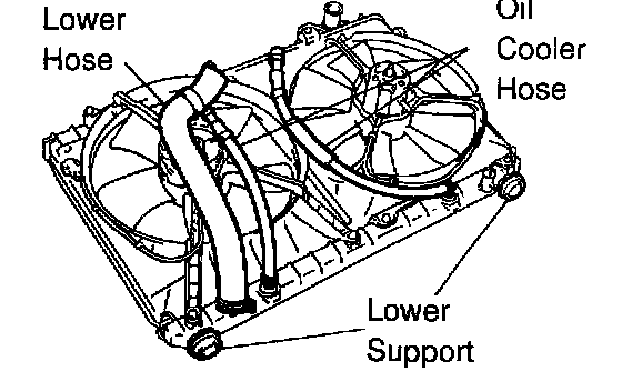 c. Lift out the radiator, and remove the radiator and cooling fans assembly.