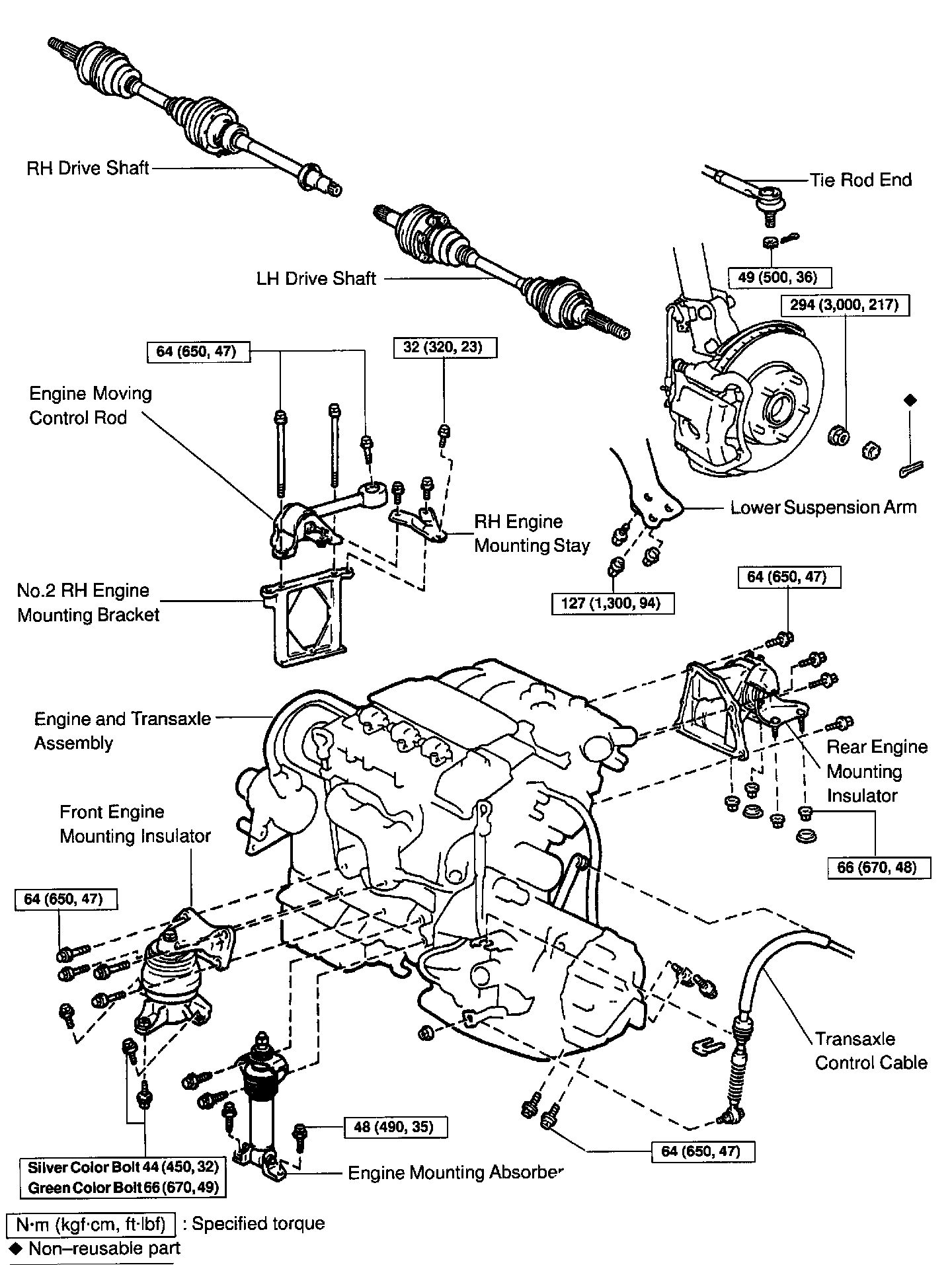 Silver color bolt: 44 Nm (450 kgf.cm, 32 ft. lbs.)