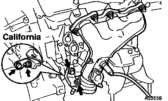 b. Tighten the 4 nuts holding the exhaust manifolds to the front exhaust pipe.