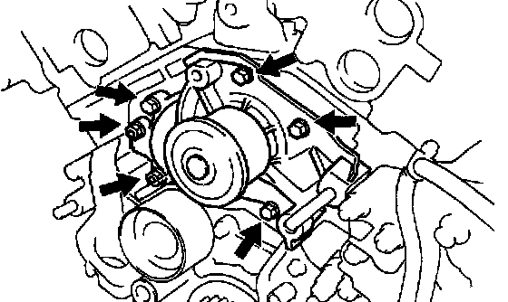 b. Turn the pulley, and check that the water pump bearing moves smoothly and quietly.