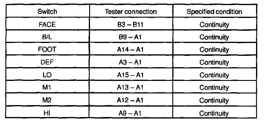 c. Check the continuity exists between terminals while the switch is pressed, as shown in the chart.