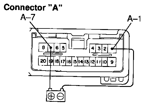 a. Connect the positive (+) lead from the battery to terminal A-7 and the negative (-) lead to terminal A-1.