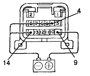 a. Connect positive (+) lead from the battery to terminal B-14 and negative (-) lead from the battery to terminal B-6.