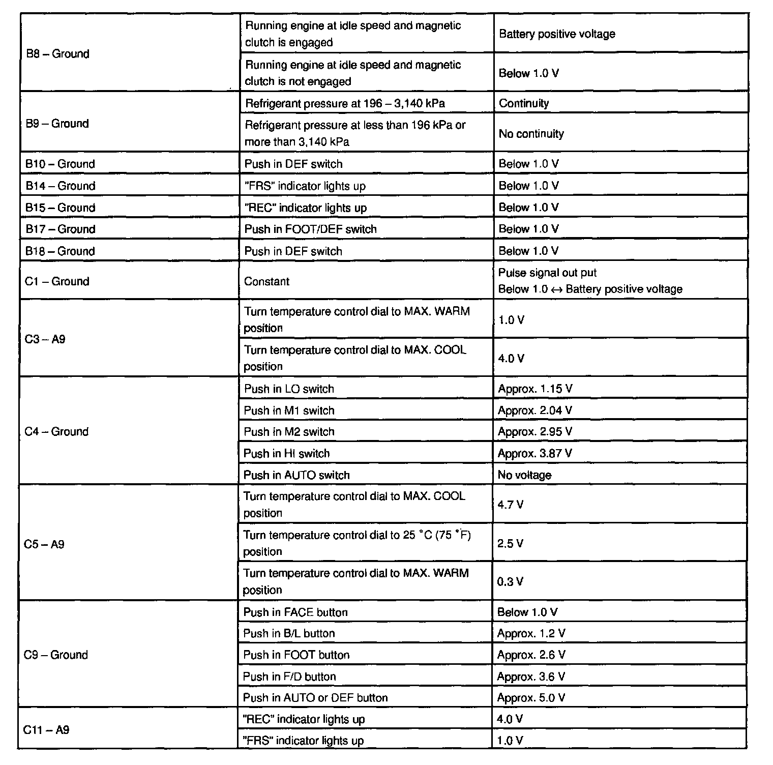 - If the circuit is not as specified, inspect the circuits connected to other parts.