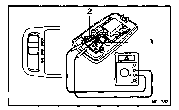 c. Turn the room light switch DOOR, check that there is continuity between terminal 1 and 2.