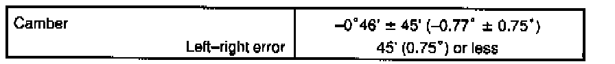 HINT: Camber in not adjustable, it measurement is not within the specification, inspect the suspension parts for damaged and/or worn-out parts and replace them as necessary.