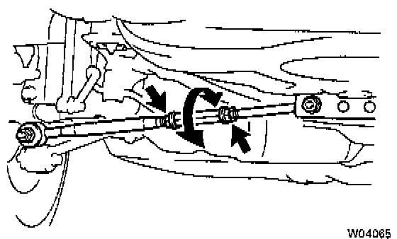 c. Turn the left and right lower suspension arms an equal amount to adjust toe-in.