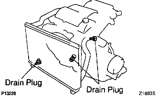 b. Loosen the 3 drain plugs of the radiator and engine, and drain the coolant.
