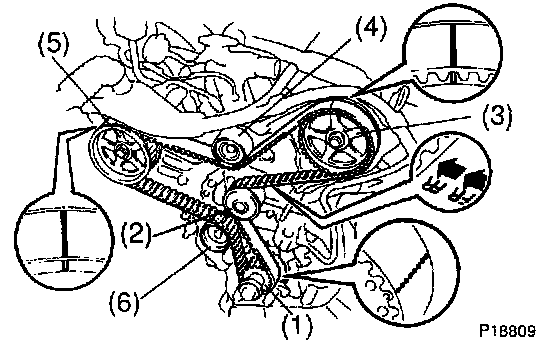 b. Face the front mark on the timing belt forward.