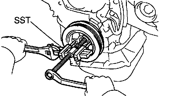 a. Using Special Service Tool(SST), remove the pulley bolt.