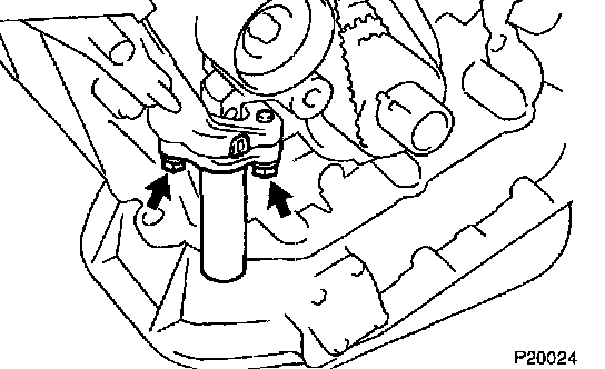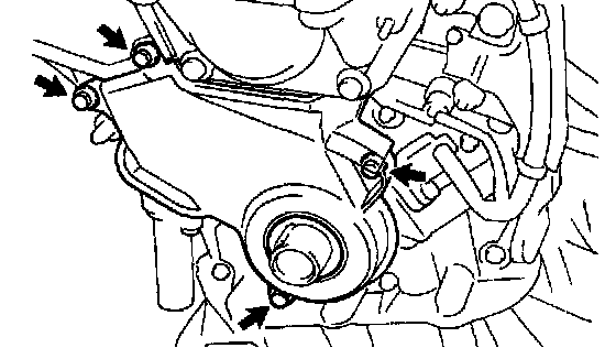 Alternately loosen the 2 bolts, and remove them, the tensioner and dust boot.