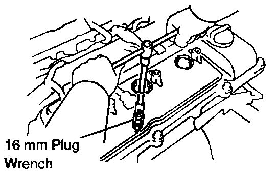 Using a 16 mm plug wrench, install the 6 spark plugs to the RH and LH cylinder heads.