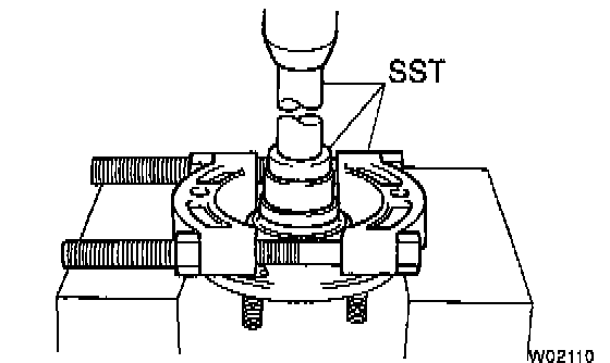c. Using SST and a press, remove the bearing.