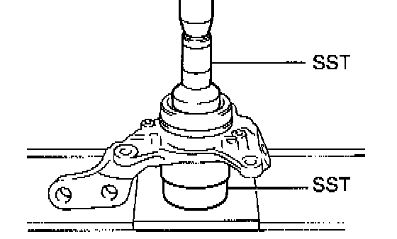 b. Using Special Service Tool (SST), remove the lower ball joint.