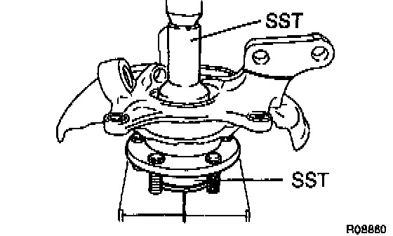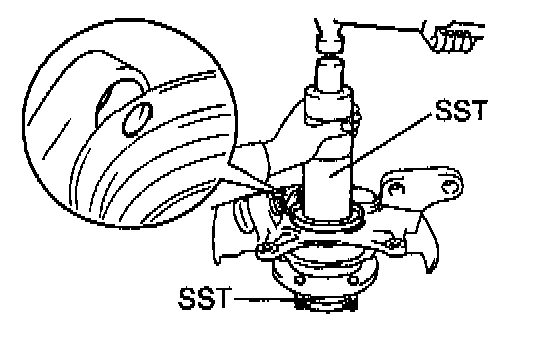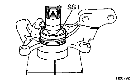 a. Using Special Service Tool (SST) and a press, install a new bearing to the steering knuckle.