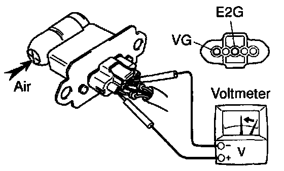 c. Using a voltmeter, connect the positive (+) tester probe to terminal VG, and negative (-) tester probe to terminal E2G.