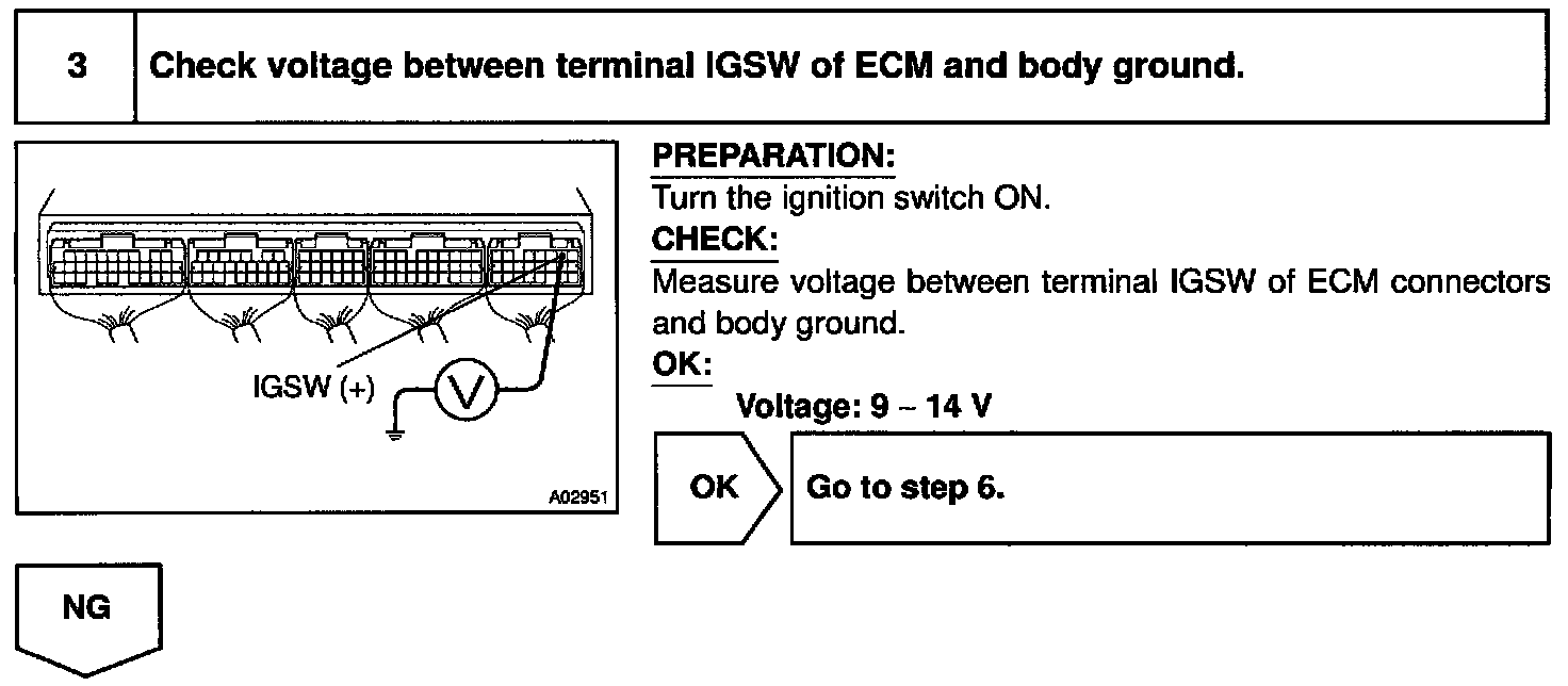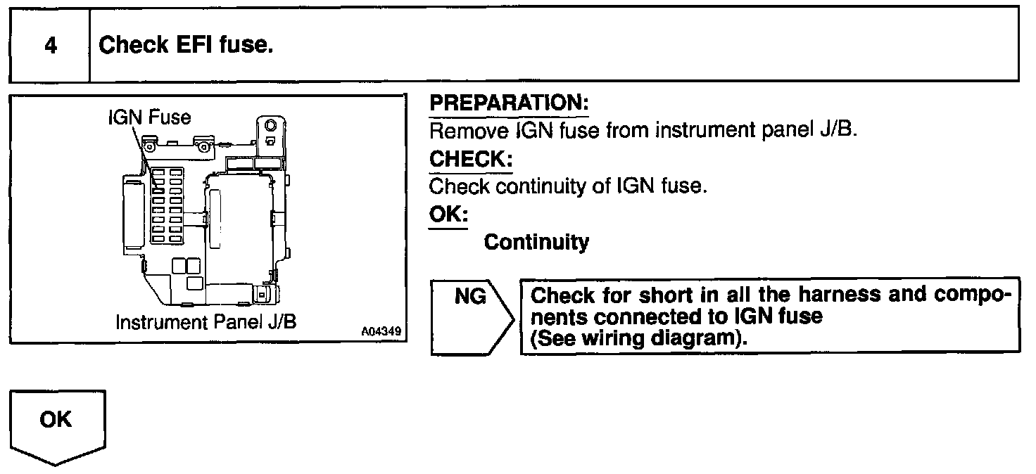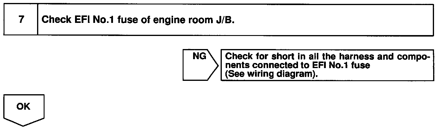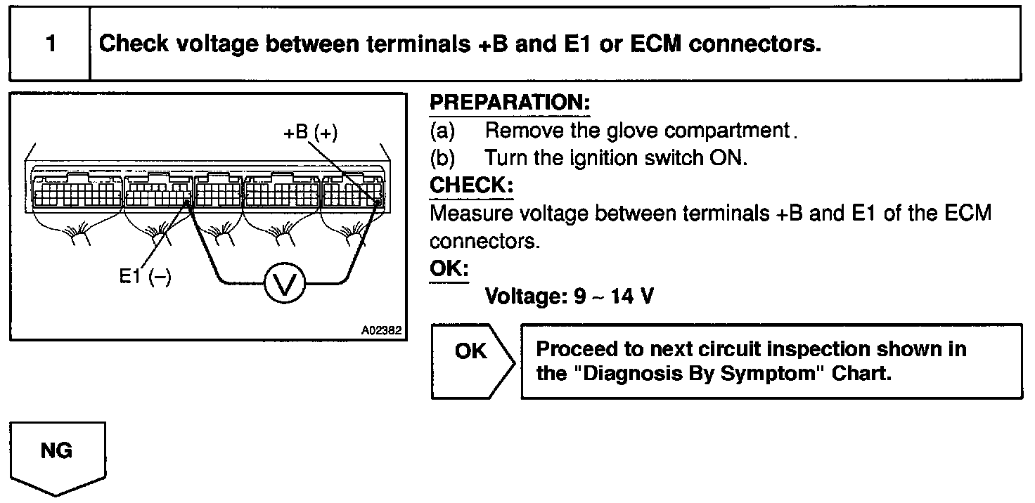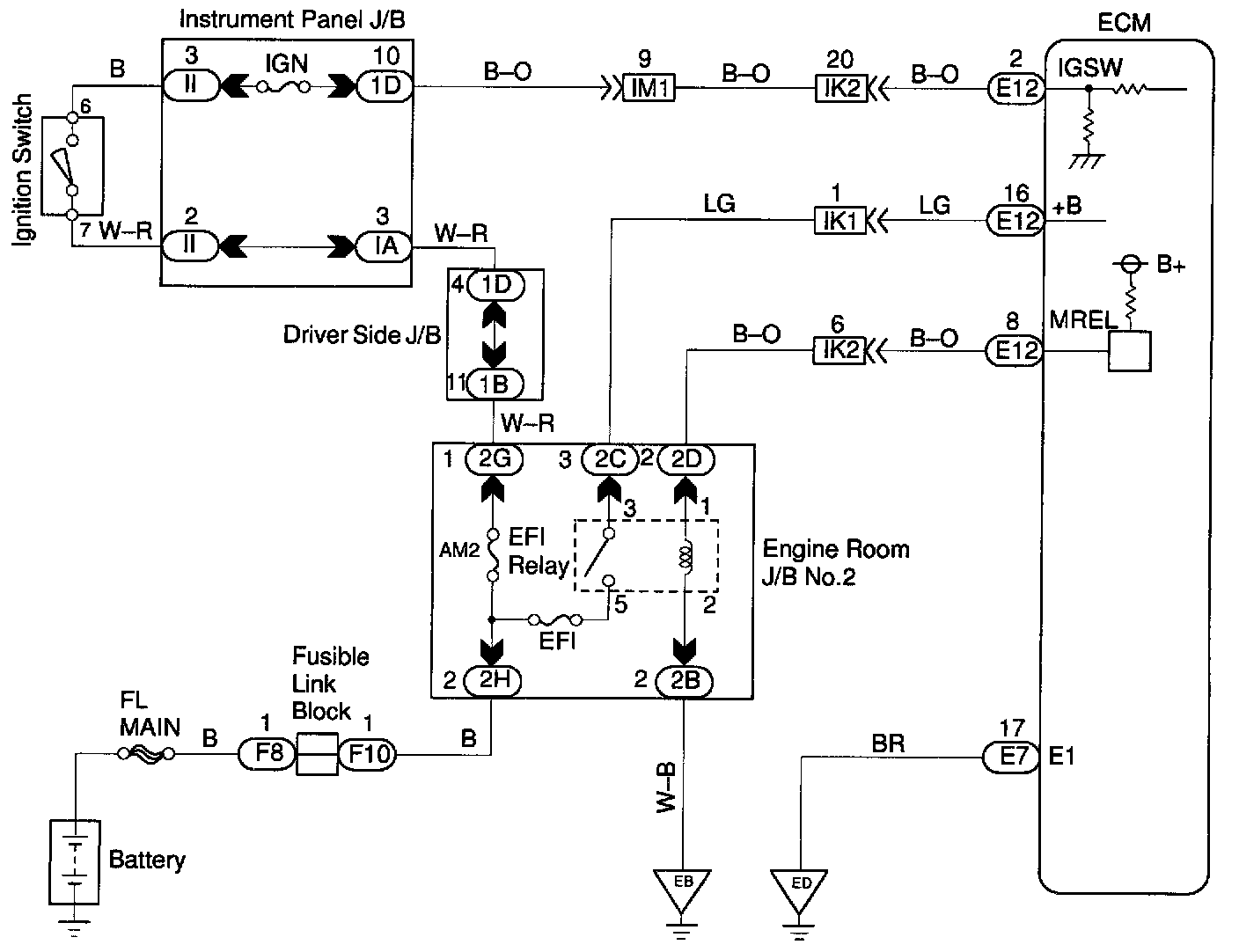 This signal causes current to flow to the coil, closing the contacts of the EFI, main relay and supplying power to terminal +B of the ECM.