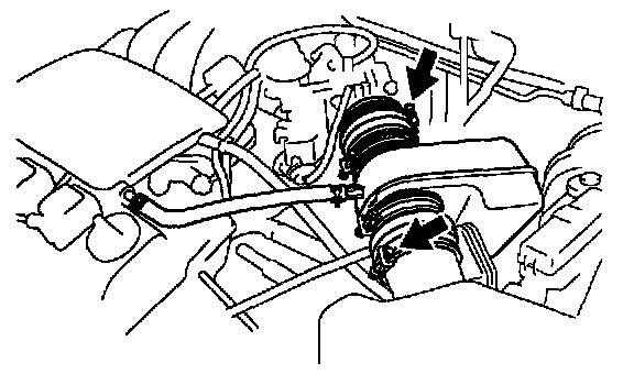 b. Loosen the 2 hose clamps, and remove the air cleaner hose.