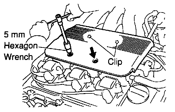 1. REMOVE V-BANK COVERa. Using a 5 mm hexagon wrench, remove the 2 cap nuts.