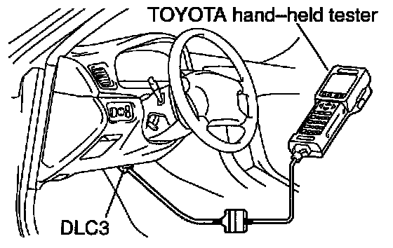 2. Connect the TOYOTA hand-held tester to DLC3 at the lower center of the instrument panel.