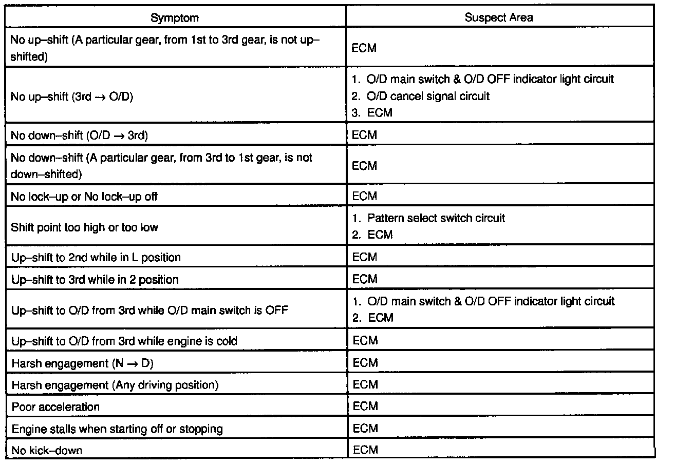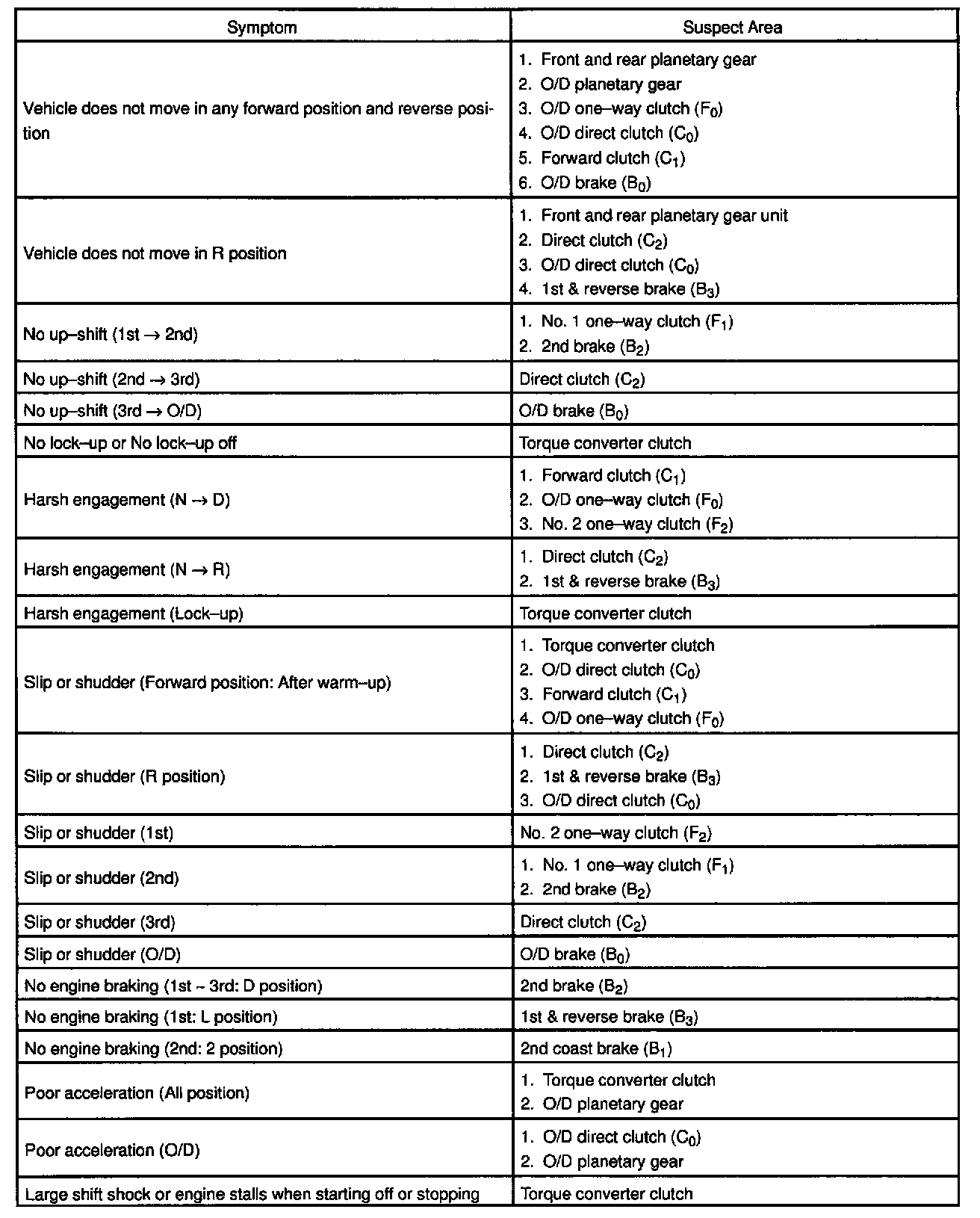 If a normal code is displayed during the diagnostic trouble code check but the trouble still occurs, check the circuits for each symptom in the order given in the charts and proceed to respective troubleshooting.The Matrix Chart is divided into 3 chapters.