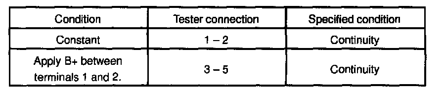 Check the relay in the same way as for "MAGNETIC CLUTCH RELAY".