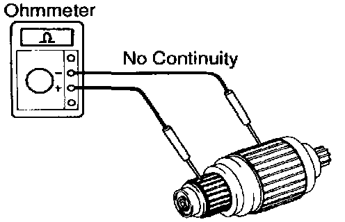 Using an ohmmeter, check that there is no continuity between the commutator and armature coil core.
