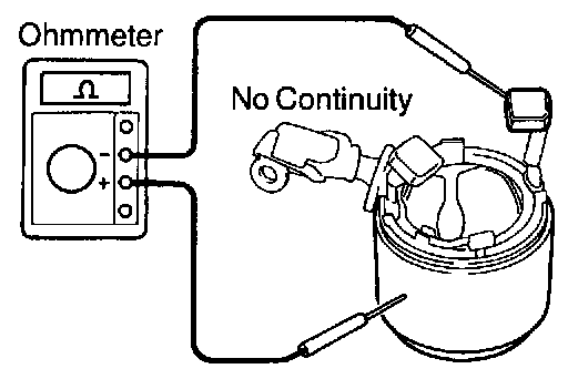 Using an ohmmeter, check that there is no continuity between the field coil end and field frame.