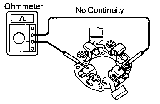 Using an ohmmeter, check that there is no continuity between the positive (+) and negative (-) brush holders.