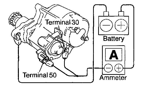 a. Connect the battery and ammeter to the starter as shown.