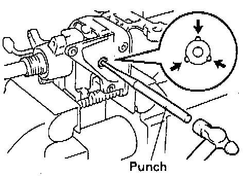 f. Using a pin punch, stake on 3 places evenly around the hole as shown in the illustration.
