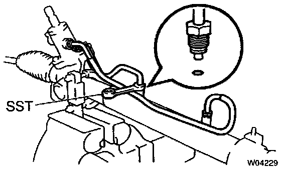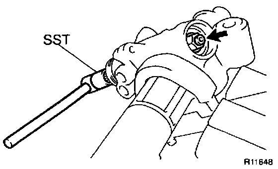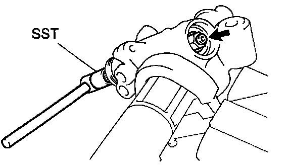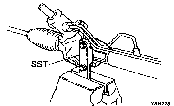 b. Using a spanner (24 mm), hold the steering rack steadily and using SST, torque the rack end.