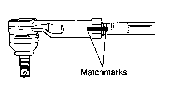 a. Screw the lock nut and tie rod end onto the rack end until the matchmarks; are aligned.