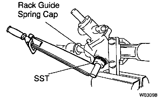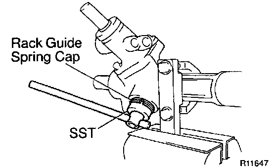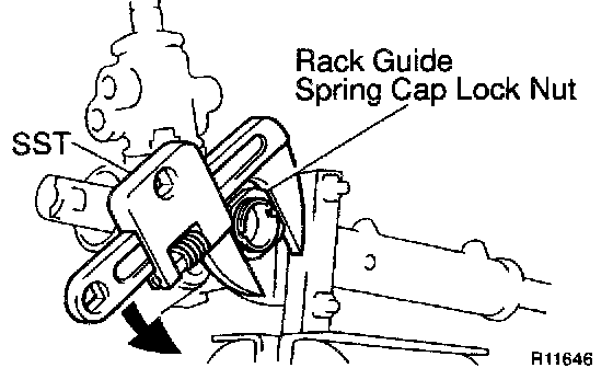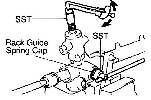 e. Using SST loosen the rack guide spring cap until the rack guide spring is not functioning.