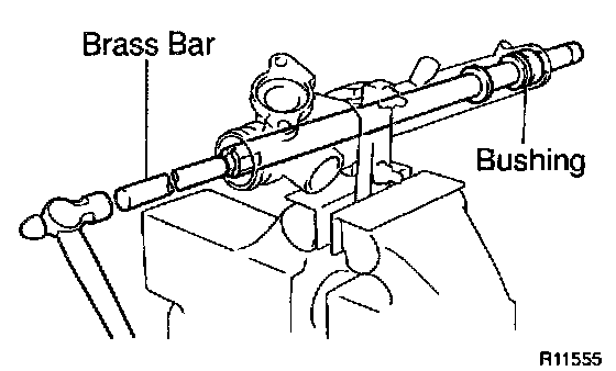 a. Using a brass bar and hammer, tap out the steering rack with the bushing.
