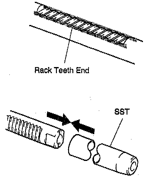 HINT: If necessary, scrape the burrs off the steering rack teeth end and burnish.