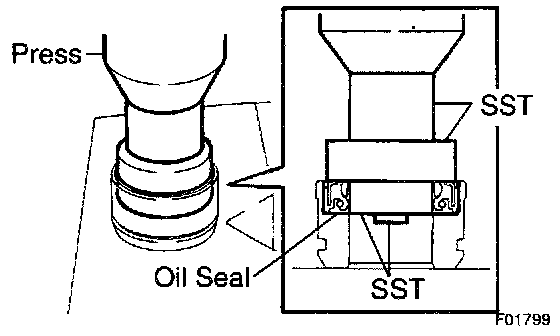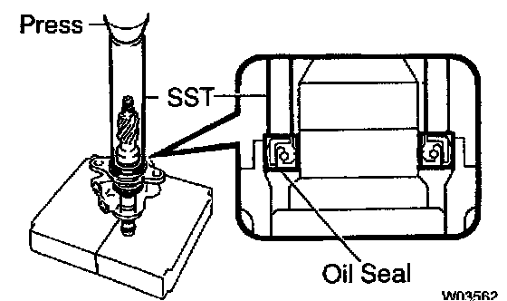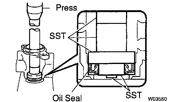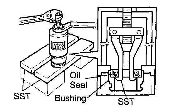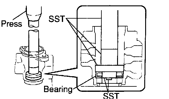 a. Using Special Service Tool (SST), press out the oil seal and bearing from the control valve housing.