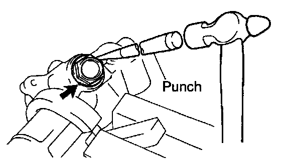 c. Using a punch and hammer, stake the 2 parts of the rack housing cap.