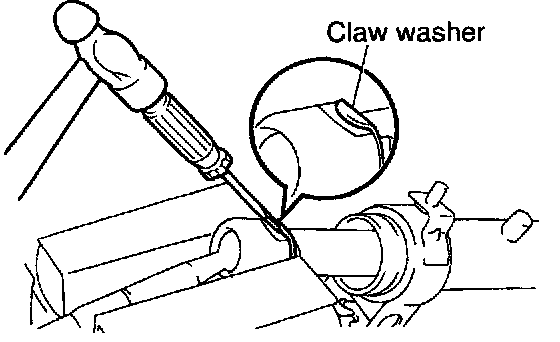 a. Using a screwdriver and hammer, unstake the claw washer.