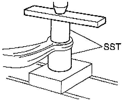 Using Special Service Tool (SST) and a press, remove the bushing.
